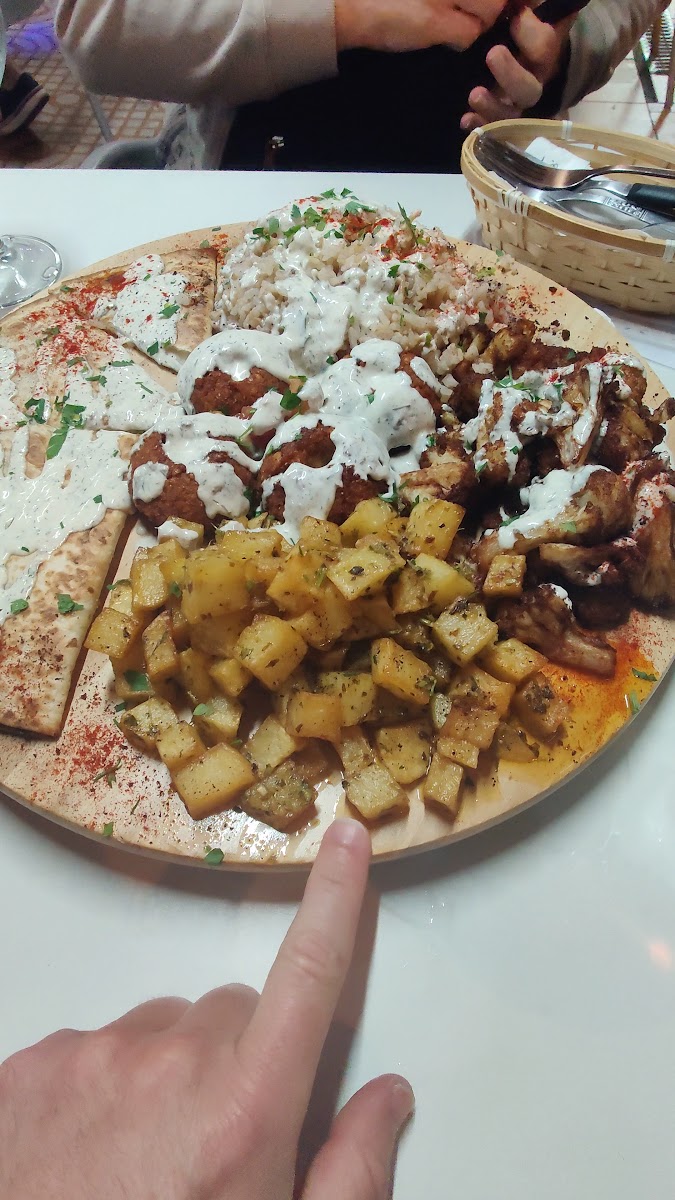 Owner was really polite and helpful! We were with a vegan person, there were some good options for vegan eating people. We also ordered Kafta skewers, on the menu was written that it was served with rice, fries and salat. But I received kebab meat without the rice, the taste of the meat was not the best. The rest of the vegan options were really well made.